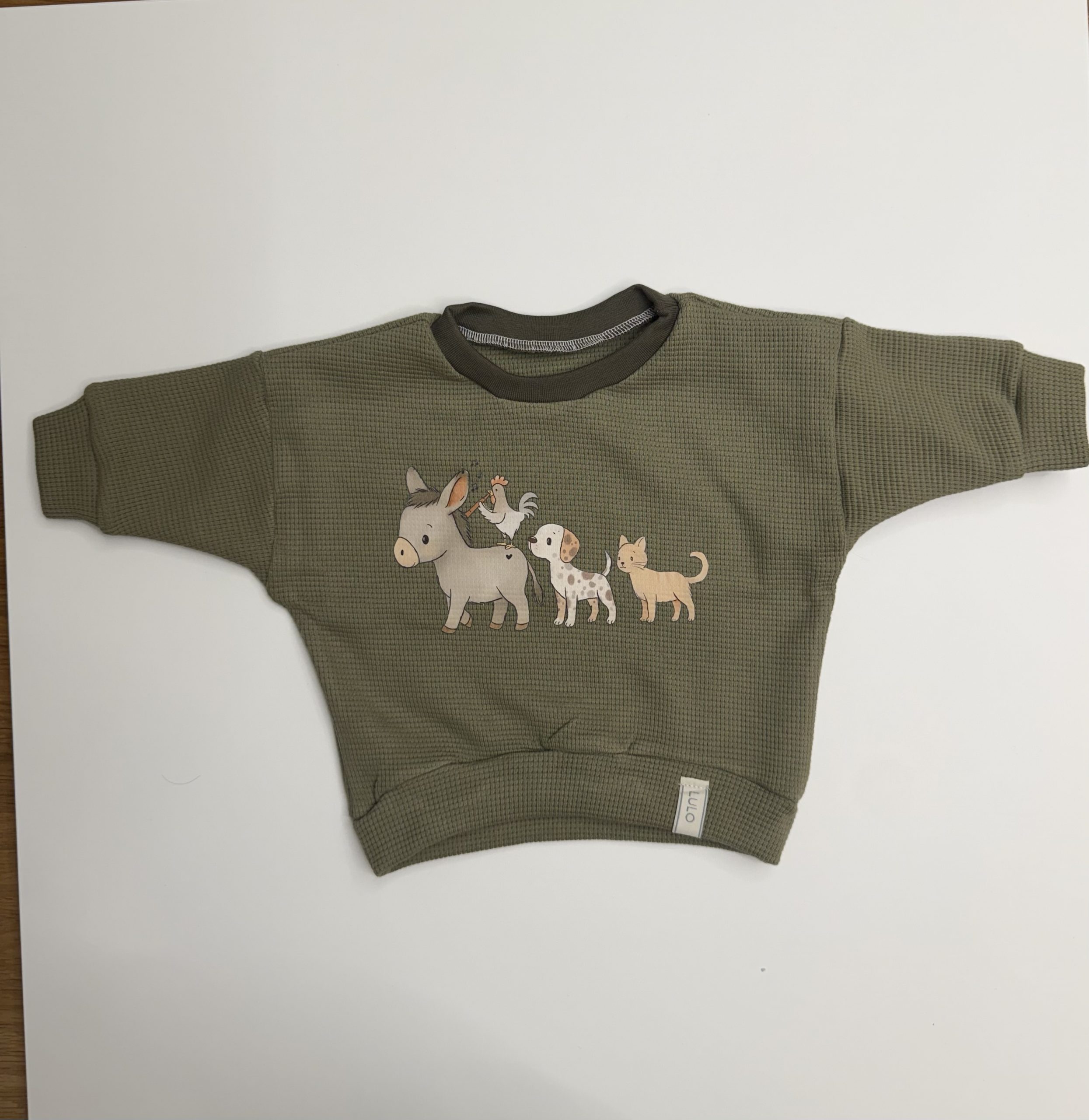 Ein Pullover im süßen Oversizeschnitt, individuell mit den süßen Bremer Stadtmusikanten.