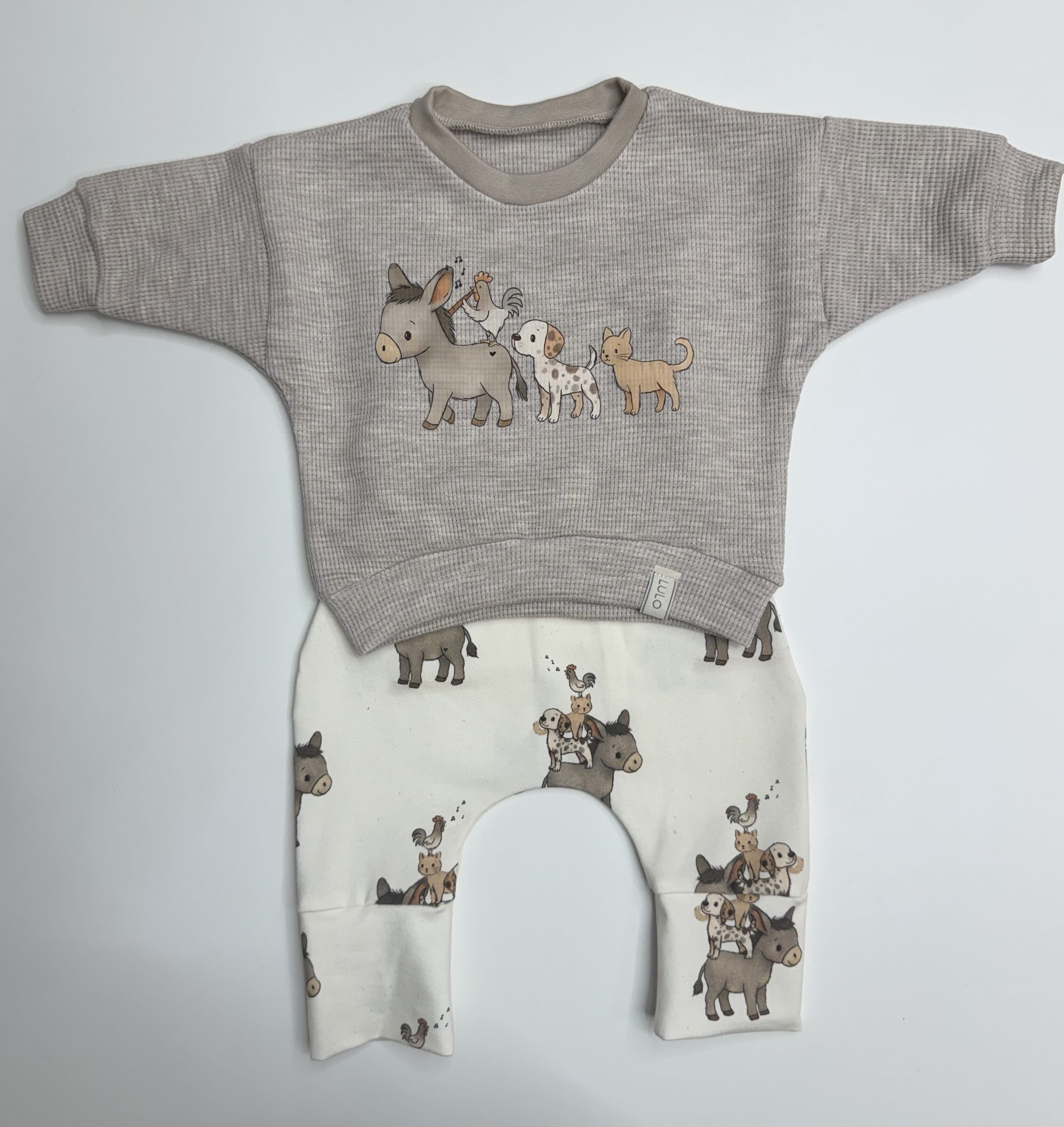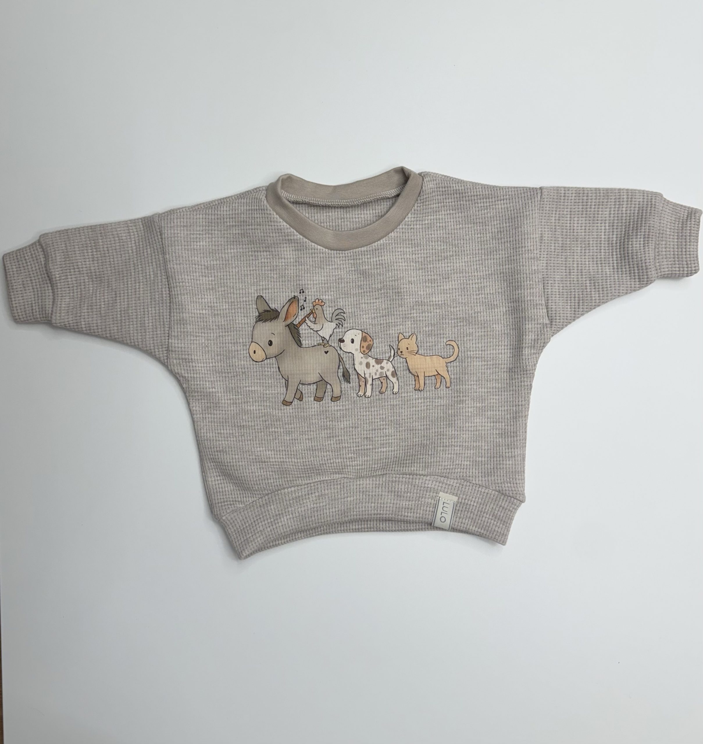 Ein Pullover im süßen Oversizeschnitt, individuell mit den süßen handgezeichneten Bremer Stadtmusikanten.